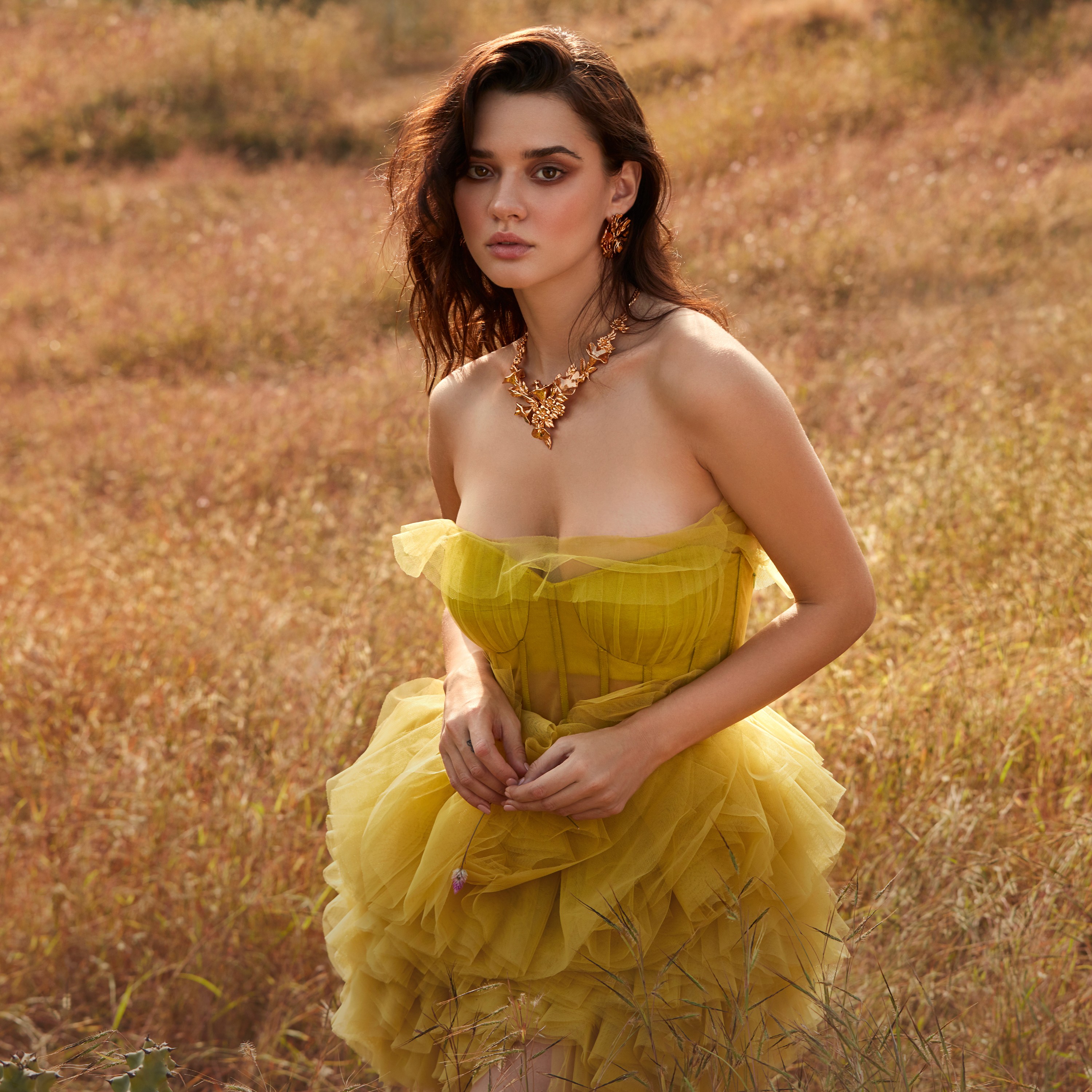 Featuring Eugeniya Belousova, the campaign integrates couture styling with statement jewellery to emphasize texture, brilliance, and design intricacy. Soft directional lighting and controlled compositions enhance the sparkle and detailing of each piece, while fluid camera movement and expressive posing create an editorial fashion mood. The visual language balances couture sophistication with timeless elegance, resulting in a polished luxury campaign suited for high-end fashion and jewellery audiences.